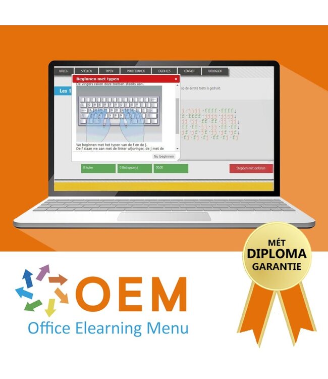 You complete the course with an official online typing exam. You may retake the test multiple times within one exam session. The best result counts toward your OEM typing diploma.